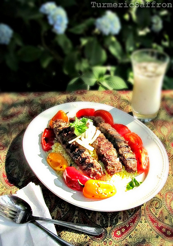 I just couldn't let my third summer of blogging pass by without posting a recipe for the internationally-known Iranian dish: kabab koobideh/kabob kubide. In addition to this popular kabab, there's also the well-known kabab barg (grilled skewered lamb tenderloin) and the delectable