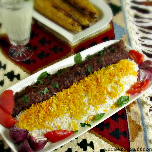 There's something unique about the flavor of grilled tomatoes and saffron with turmeric. I love all the kababs but the gret Persian rice and grilled tomatoes, my wath mouters for the taste , nom nom nom